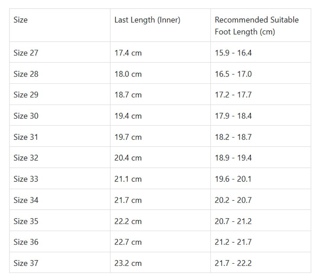 Sizes (EU): 27 – 37